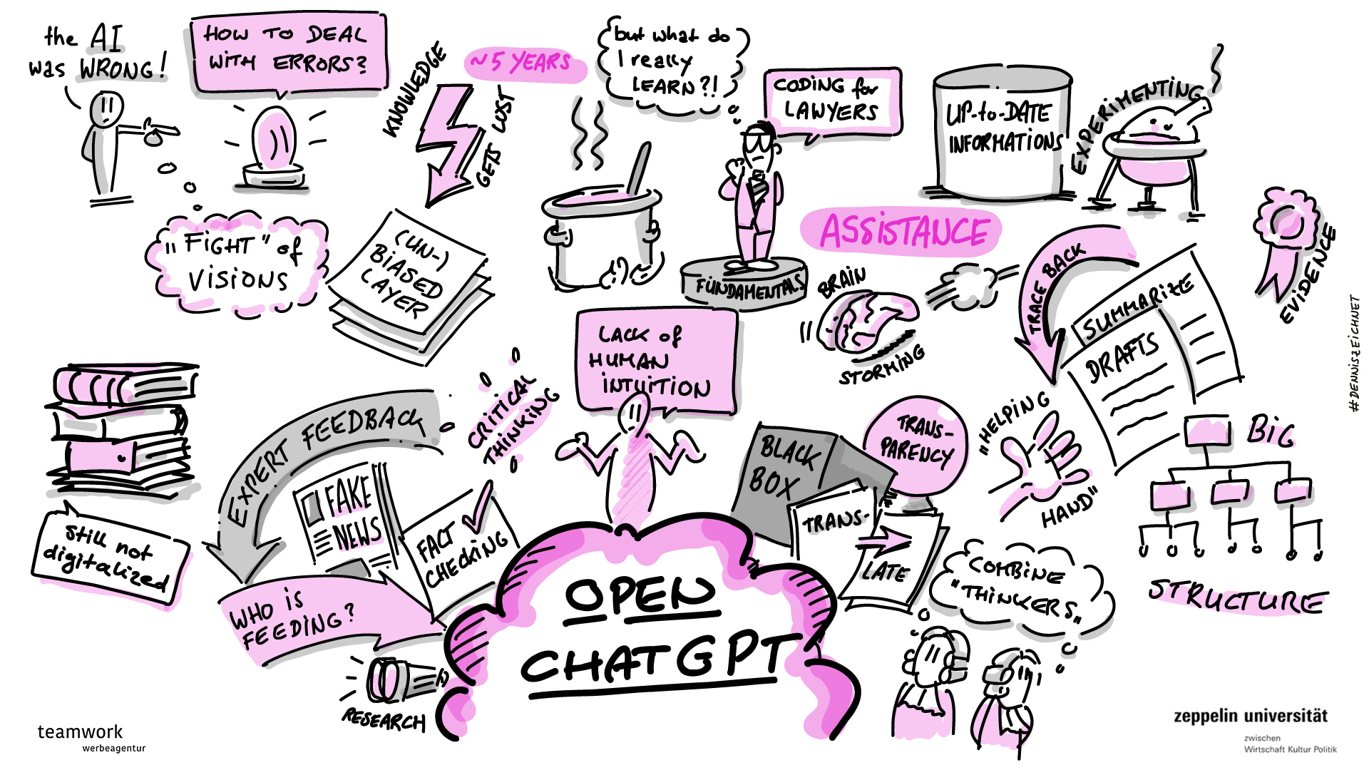 Dann wird gezeichnet: noch während dem Vortrag oder der Diskussion entsteht das Bild.