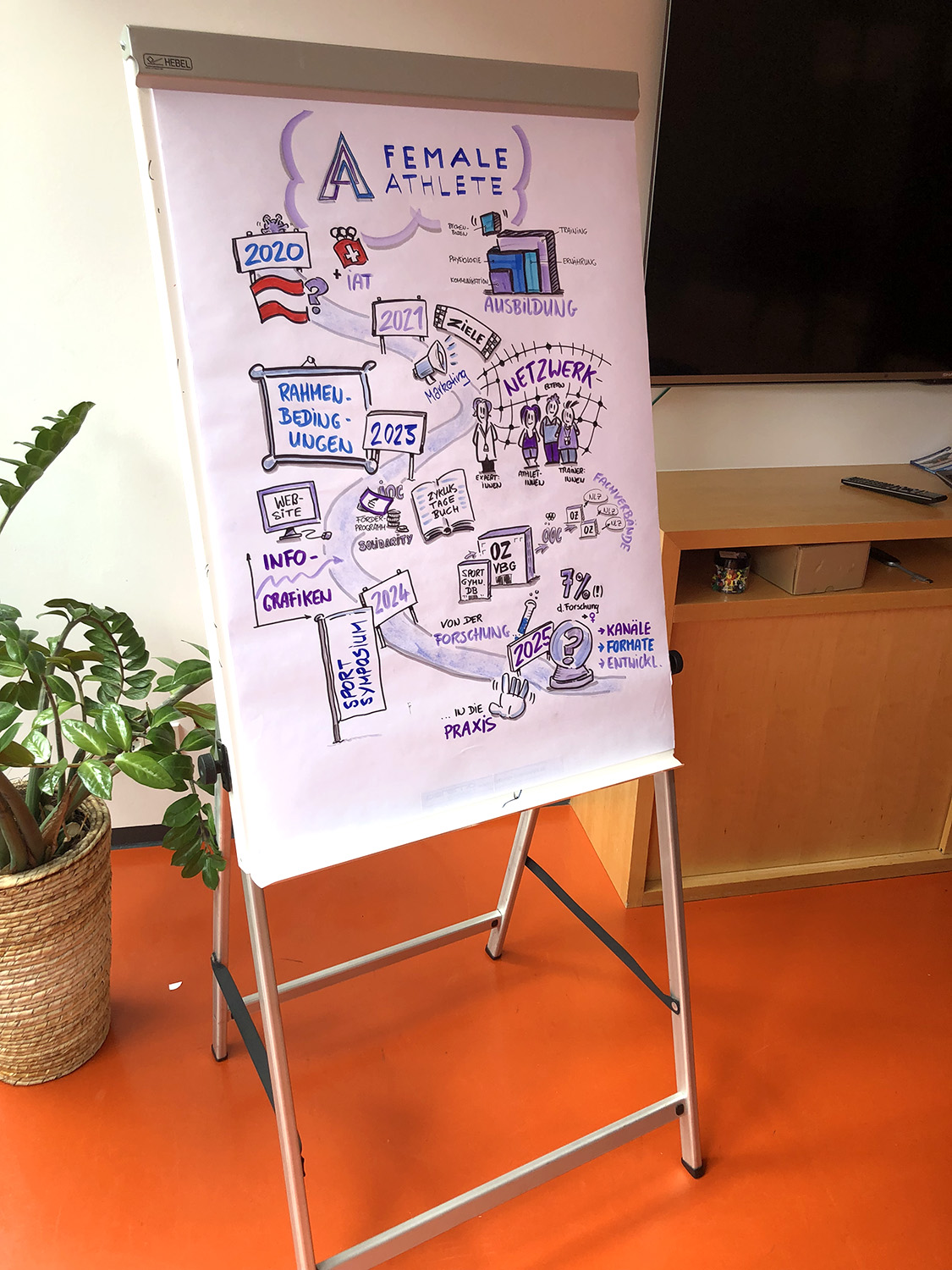 Das fertige Graphic Recording kann nach der Veranstaltung als digitale Datei oder gedrucktes Poster zur Verfügung gestellt werden. Es dient als Erinnerung an den Inhalt der Veranstaltung und kann auch für interne oder externe Kommunikation verwendet werden.