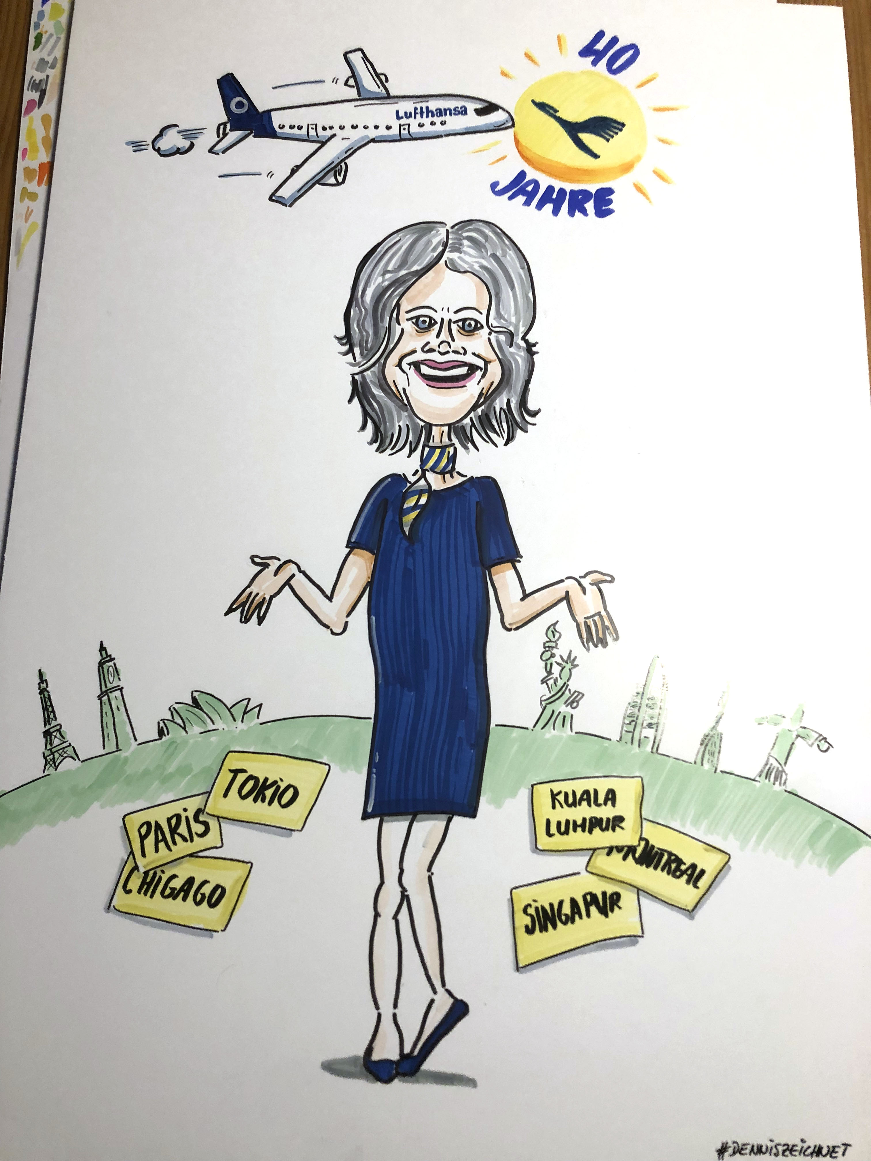 Durch Graphic Recording werden Inhalte visuell vermittelt und dadurch ein bleibender Eindruck geschaffen. Viele Teilnehmer:innen kommen auf mich zu und sagen dann so was wie: "Ich könnte so was nicht", "Ich kann doch gar nicht zeichnen", "Nicht mal Strichmännchen" oder "Ich wünschte, ich könnte so gut zeichnen".